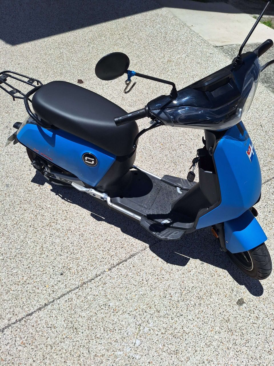 Scooter SUPER SOCO, modèle CU-X PRO de couleur bleue 4600 km Selle neuve